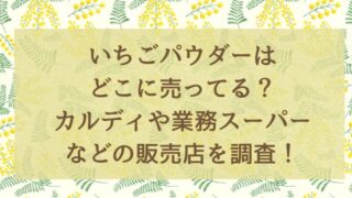 この記事ではいちごパウダーの販売店を調査した結果をまとめています。いちごパウダーはカルディや業務スーパー、製菓材料店などで販売されている場合があります。詳しい販売店情報を知りたい人はこの記事を、今すぐ手に入れたい人は通販サイトを確認して下さ...