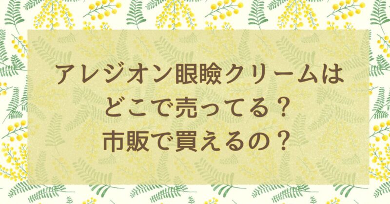 「アレジオン眼瞼クリームはどこで買えるの?市販されてるの?」と気になる方も多いはず。