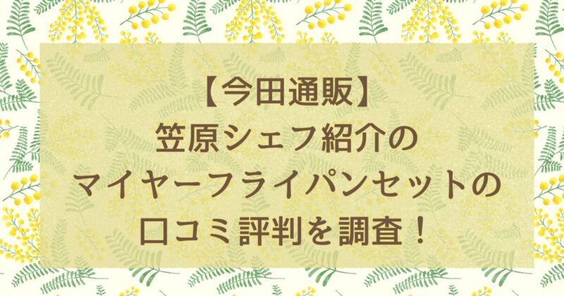 この記事では今田通販で笠原シェフが紹介したマイヤー サーキュロン フライパンセットの口コミや評判などを紹介しています。
